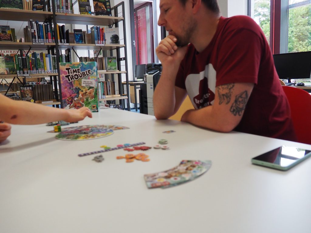 Franziska Maibach, Medienpädagogin der Stadtbücherei und Mitorganisatorin des Events, war vor Ort und sorgte für den reibungslosen Ablauf des Nachmittags. Wir, die Wolfenbütteler Brettspielfreunde, hatten uns auf diesen Tag gründlich vorbereitet. Alle Spiele waren aufgebaut und spielbereit, sodass die Gäste direkt einsteigen konnten. Freiwillige standen den ganzen Nachmittag über beratend zur Seite, erklärten geduldig die Regeln und spielten selbst mit. Diese intensive Betreuung trug wohl maßgeblich zum Erfolg der Veranstaltung bei.